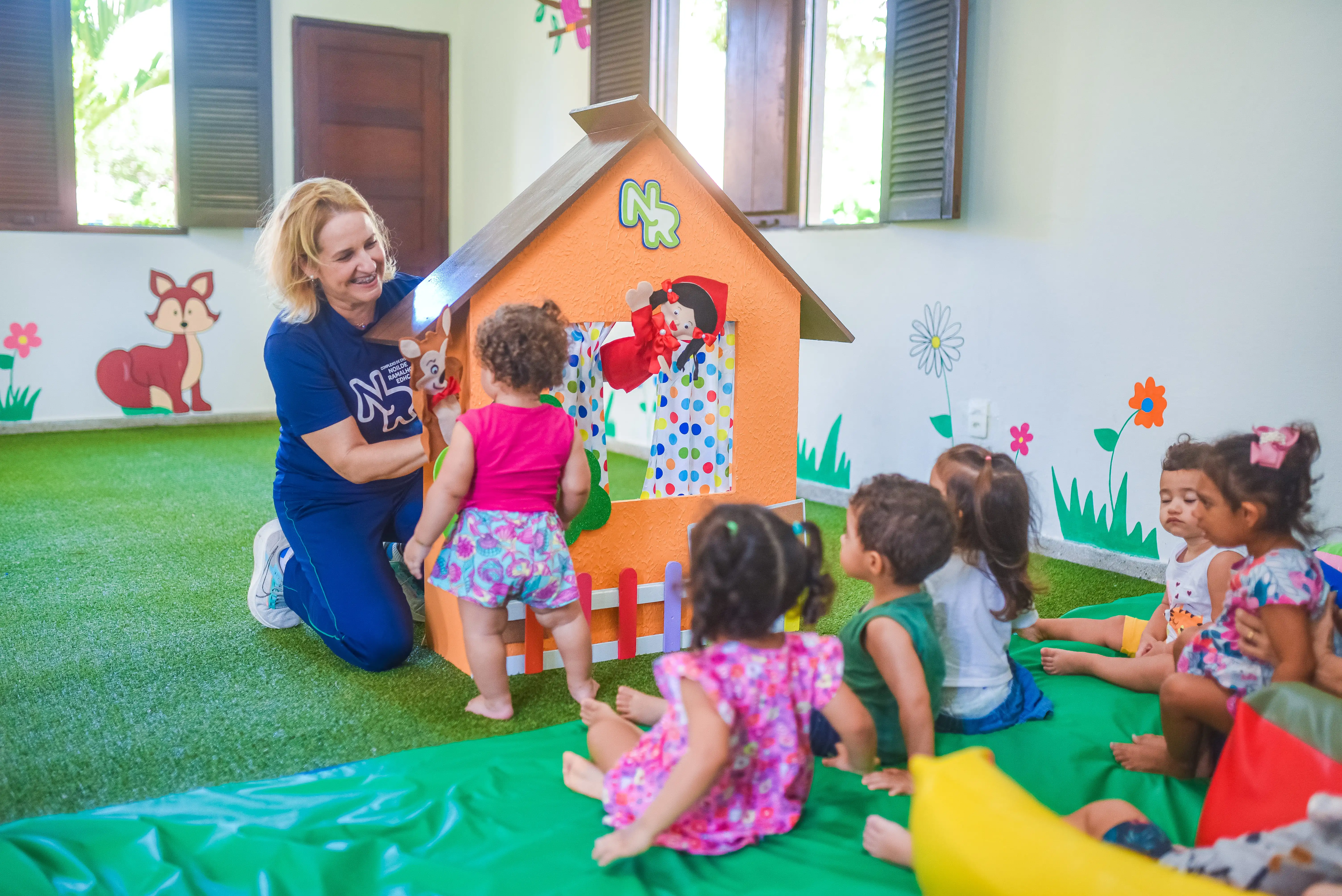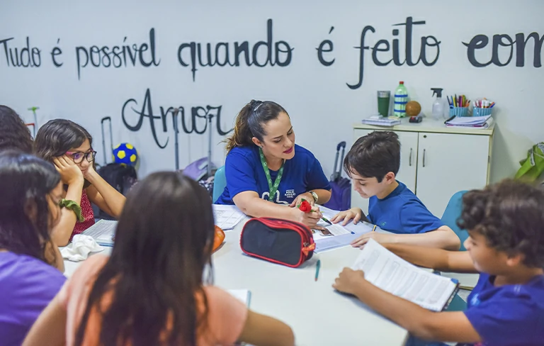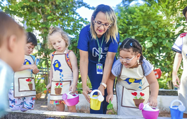 Para nós, a criança necessita de rotina, presença, cuidado, constância. Por isso, oferecemos no Tempo Integral as seguintes atividades:acolhida, realização de tarefas de casa, retomada dos conteúdos com atividades pedagógicas, lanche, oficina, recreação, banho, almoço, *ceia (para alunos até o 1º ano), sono/descanso.